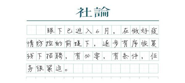 换句话说,重启线下招聘,不是对线上招聘的简单否定和放弃,而是要线上线下同时发力,实现1+1>2的效应,为招聘市场提速增效,为“稳就业”“保基本民生”注入强劲动力。