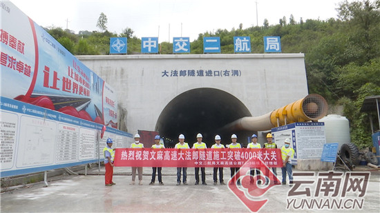 6月6日,文麻(文山至麻栗坡)高速公路全线控制性工程——大法郎特长隧道突破4000米大关,标志着隧道工程取得阶段性进展,为后续隧道贯通打下了良好基础。