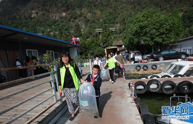 昆明的一些热心市民们前来参加土著鱼类增殖放流生态保护活动(摄于6月6日)。(新华网 范芳钰 摄)