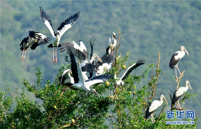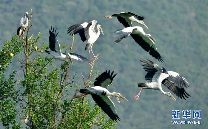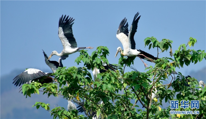 云南弥勒:荷花芬芳吐 钳嘴鹳翩跹舞