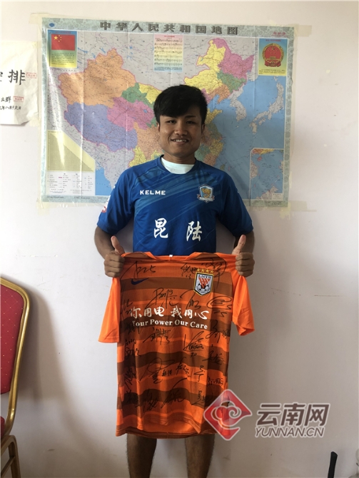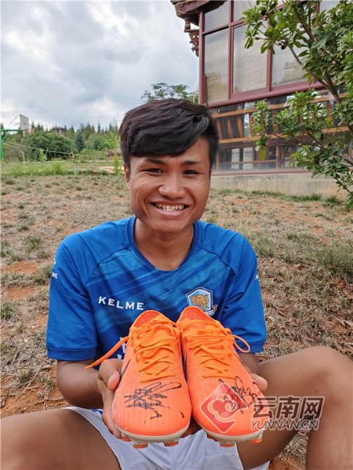 在之前的采访中,岩坎香告诉云南网记者,他的偶像是现效力于西班牙皇家西班牙人俱乐部的“国脚”武磊。经过多方联系,皇家西班牙人俱乐部和武磊共同给岩坎香送了一件签名球衣。在得知了岩坎香的故事后,另两位“国脚”韦世豪和刘洋也分别送来了签名球鞋和俱乐部全队签名球衣,并专门拍摄了暖心的视频。