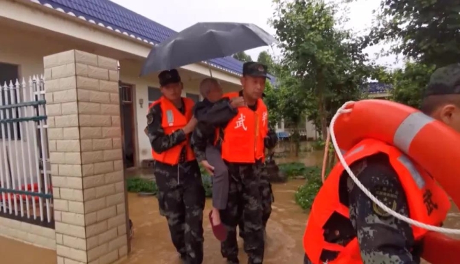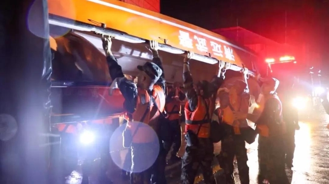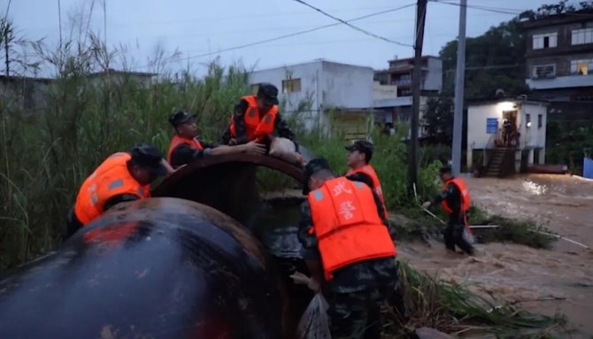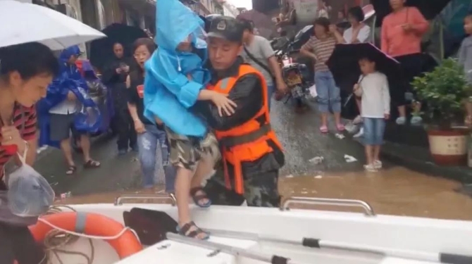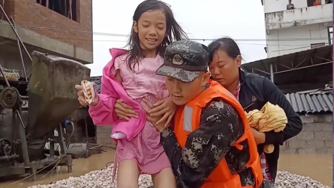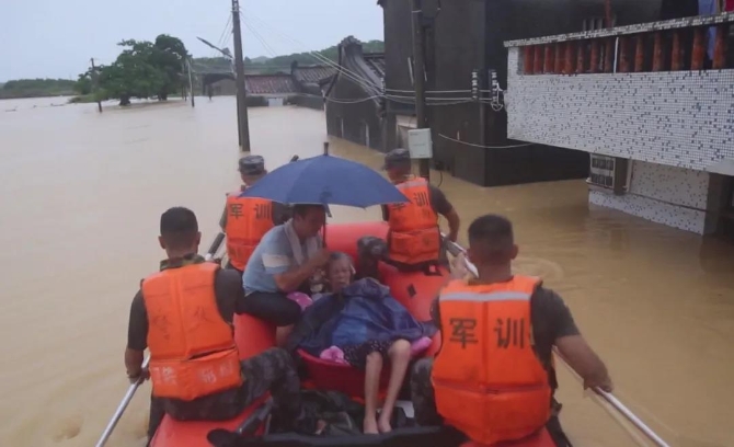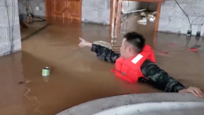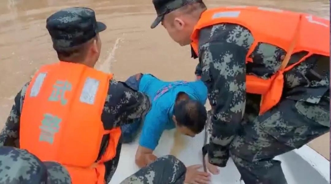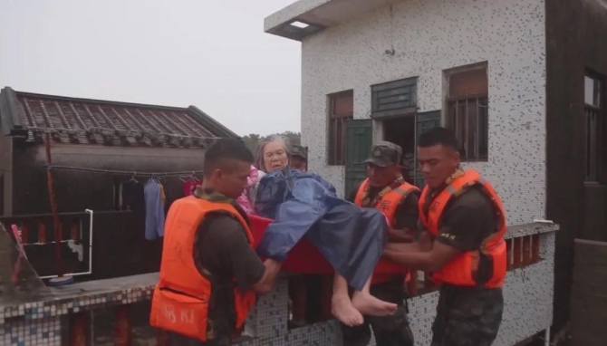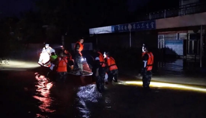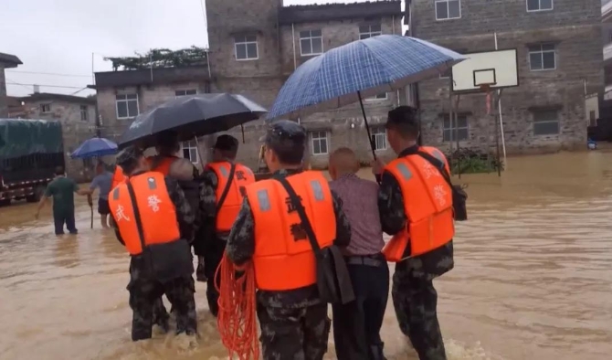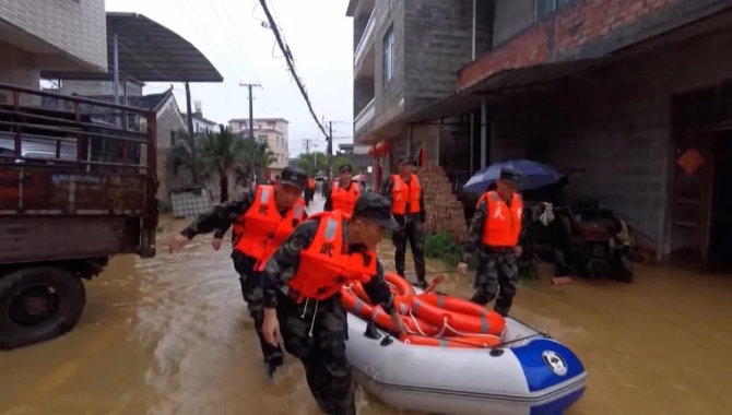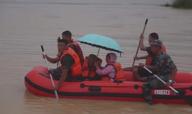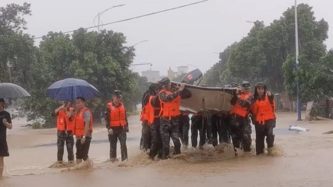 6月8日,广东省汕尾市捷胜镇部分村庄发生内涝,不少房子被洪水淹没至二楼,加上交通、通信、电力全部中断,受困人员位置和人数都很难确定,夜间救援难度加大。陆军第74集团军某旅紧急出动30多名官兵前去救援。