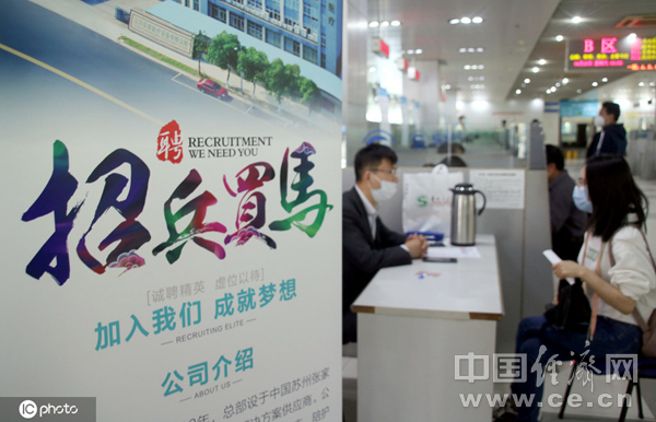4月25日,求职者在苏州市人才市场线下招聘会上寻找岗位。(图片来源:东方IC)