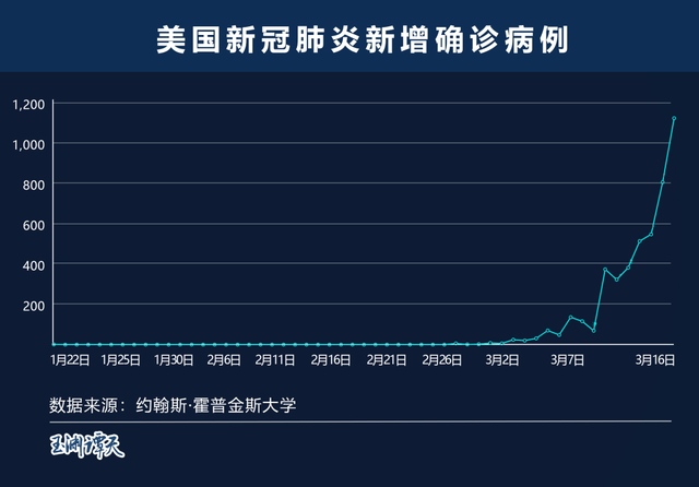 发出隔离令的这天,美国单日新增病例过千,一周后,单日新增病例过万。