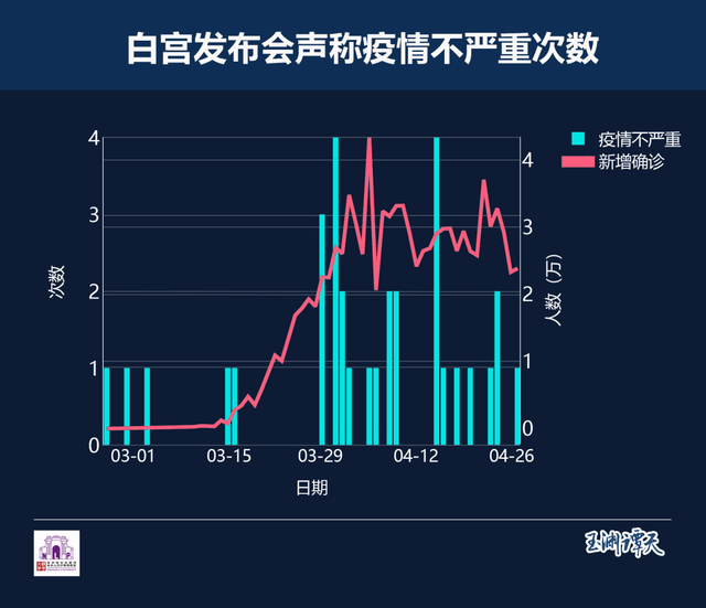这是谭主请清华大学自然语言处理与社会人文计算实验室的朋友们做的,病例数在持续上升,白宫疫情应对小组口中的“不严重”次数也在上升。
