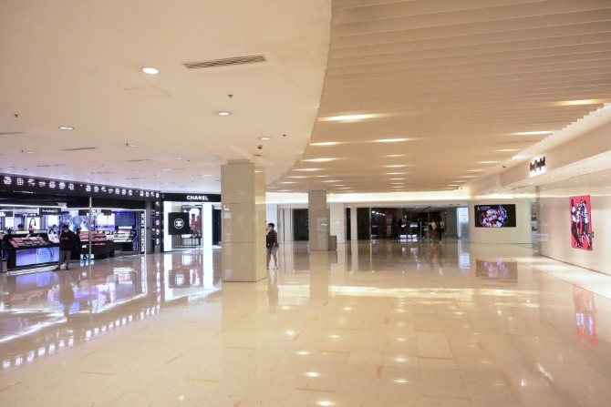 在香港尖沙咀,大型购物商场海港城内人流稀少(2020年2月12日)。新华社记者 王申摄