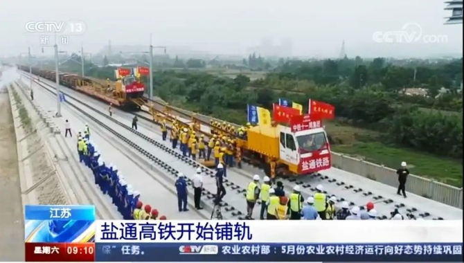 6月12日,由中国铁建中铁十一局施工的全国“八纵八横”高铁网沿海高铁通道重要组成部分——盐通高铁,正式进入线上轨道铺设阶段。盐通高铁位于江苏省境内,正线全长156.6公里,设计时速350公里。中铁十一局承担着全线轨道铺设和121组道岔的铺设任务。加快盐通高铁建设,对完善中国沿海铁路动脉,推动江苏沿海地区加快融入长三角区域,促进苏中、苏北振兴和打赢脱贫攻坚战具有十分重要的意义。