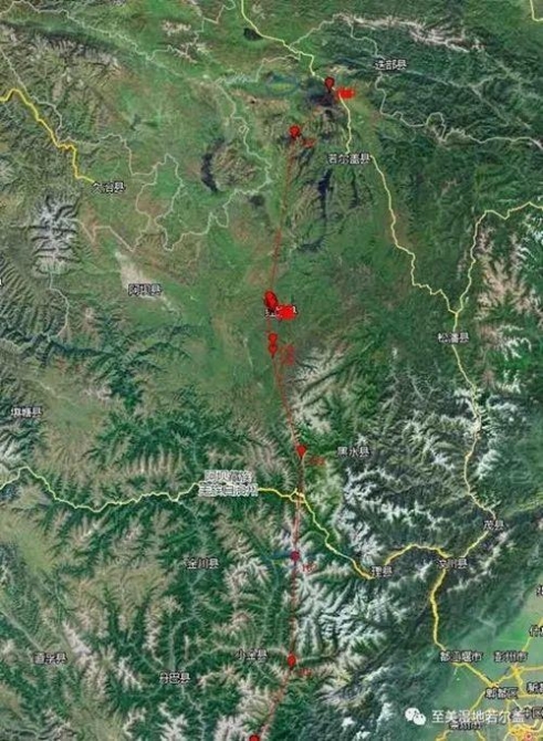 2019年若尔盖湿地保护区内首批完成环志的黑颈鹤,11月出发一路向南飞往云南大山包,下图为根据环志信息得出的黑颈鹤部分迁徙路线图。