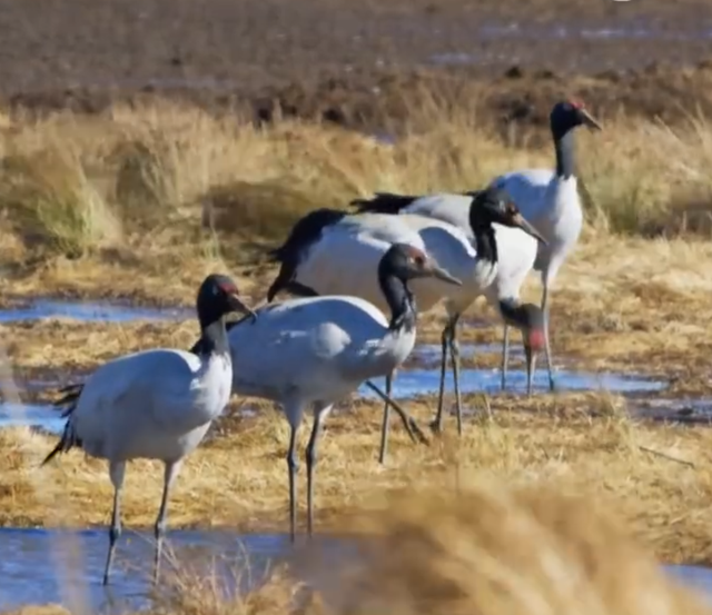 云南大山包湿地、四川若尔盖湿地,这两个湿地都是国家级自然保护区,共同保护了黑颈鹤这一珍稀禽鸟的栖息地生态环境,近年来,两地观测到的黑颈鹤野生种群数量持续上升。