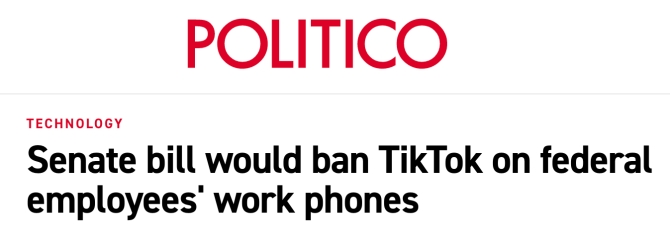 △美国“政治”新闻网报道:参议院法案或将禁止联邦政府雇员在工作电话上安装抖音