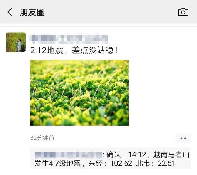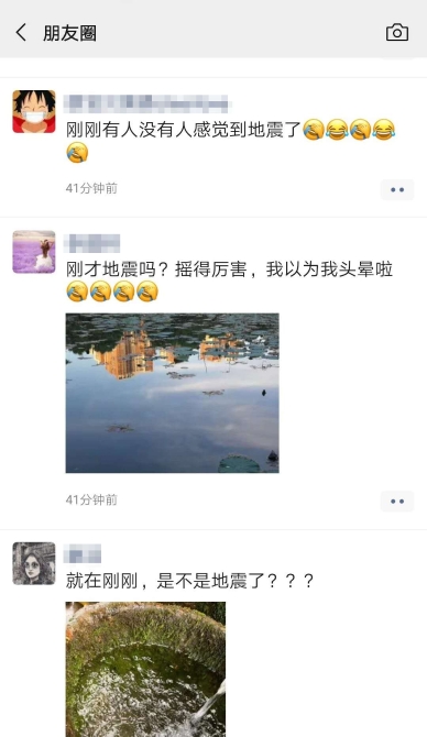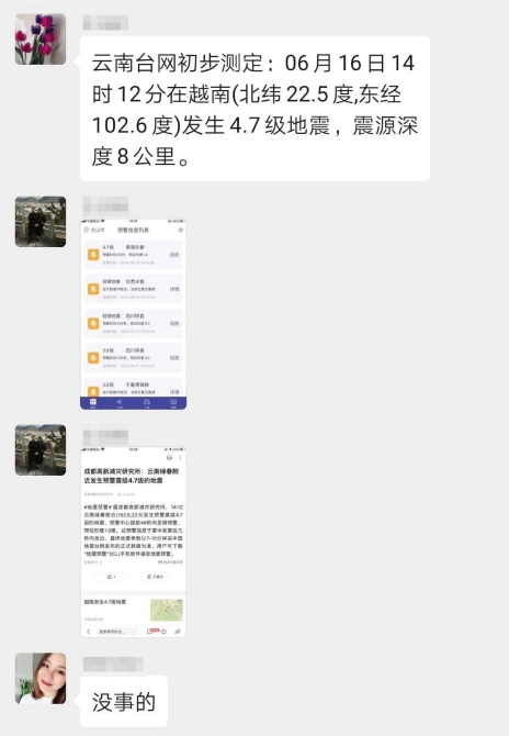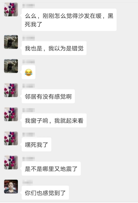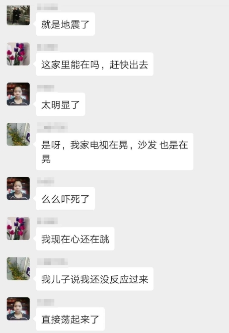 地震发生时,居住在蒙自、开远、个旧等高楼里的居民,很多都感受到了较强的震感,有人立即在小区微信群里发布了信息,有人还称“不敢在家了,要躲出去了。”另有红河网友表示,震感“老是强烈了,床都晃起来了。”