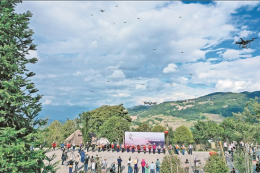 广西龙胜各族自治县龙脊梯田风光(无人机照片)。
