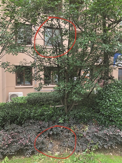 6月17日下午,扬子晚报紫牛新闻记者来到华润国际·凯旋门二期小区,很快便找到了事发地。记者看完现场后,发现孩子能够摔在树上都是一个奇迹。孩子从29楼厨房窗户摔出后,花圃中有可能给孩子卸力的树仅有两棵,但树干距离1楼同号房间窗户少说也有四五米远。