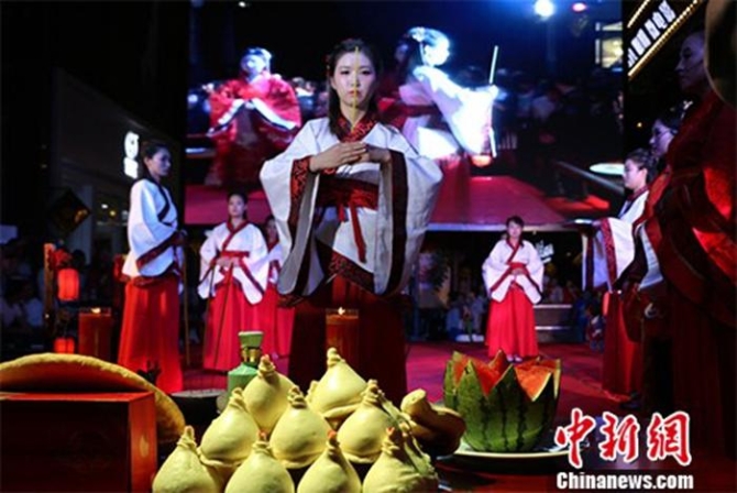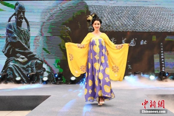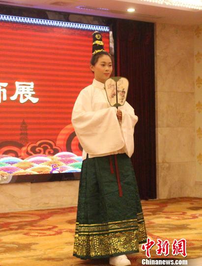 资料图:图为泉州传统文化促进会成立仪式上,明朝服装展示。 廖静 摄