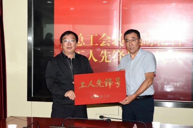 6月16日,云南省总工会转授云南援鄂(咸宁)医疗队湖北省“工人先锋号”仪式在昆举行,省总工会党组书记、常务副主席孔贵华,向省卫生健康委党组书记、云南援助湖北医疗队指挥长许勇刚,转授湖北省总工会颁发的“工人先锋号”奖牌及证书。