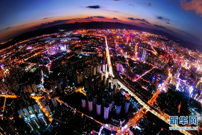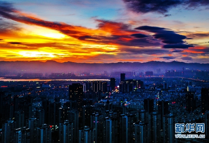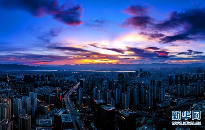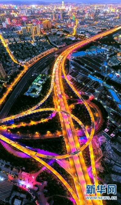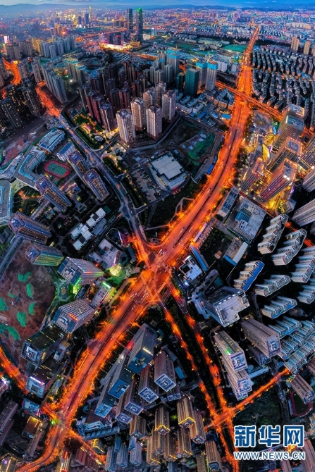 春城昆明,一年四季,一日四时,都有看不完的美景。夜幕降临下的昆明,晚霞褪去,华灯初上,万家灯火拼凑出一幅繁华热闹、温暖祥和的城市夜景图。图为航拍视角下的昆明夜景(摄于6月1日)。新华网发(崔永江 摄)