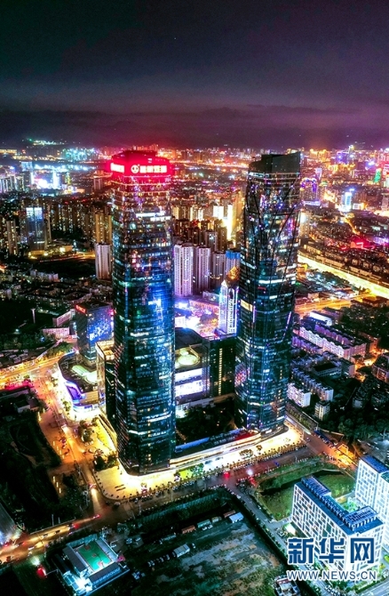 图为航拍视角下的昆明夜景(摄于6月1日)。新华网发(崔永江 摄)