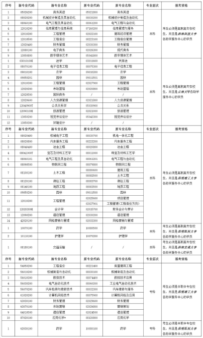 3.以下专业为学分互认试点专业,报考以下专业的考生,必须具备表内要求的报考资格,否则不能取得毕业证书。