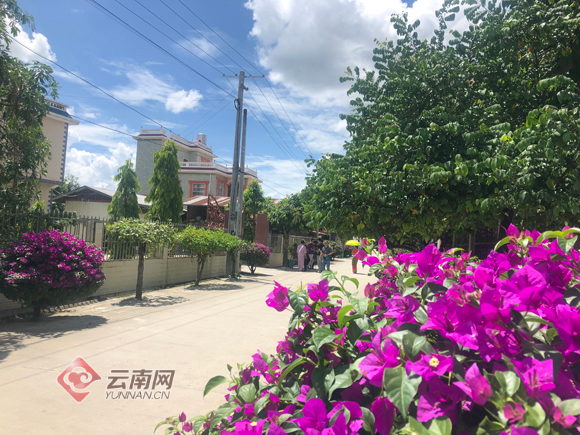 6月19日,位于祖国西南边陲的傣族村寨瑞丽市弄焕村瓜果飘香。下午时分,阵阵热浪袭来,不一会儿功夫天空中乌云密布,倾盆大雨说来就来。待雨过天晴,被雨点打落的三角梅铺满家家户户的门前,浪漫气息十足,令来访记者们不禁感叹,美丽乡村就在眼前。