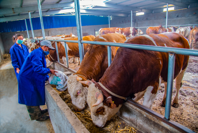 村民努尔麦麦提·图尔荪尼亚孜是牛羊养殖大户,养殖了150头牛、650只羊,有着丰富的养殖经验。在“访民情、惠民生、聚民心”驻村工作队和村两委的支持下,他注册成立了和田绿色家园农牧林发展有限公司,采取托管模式带动周边贫困户规模化、产业化发展牛羊养殖。目前,该公司为当地6名群众提供了就业岗位,接手托管了9户贫困户的牛羊。2019年,为托养贫困户发放分红7万元,为员工发放工资12万元。