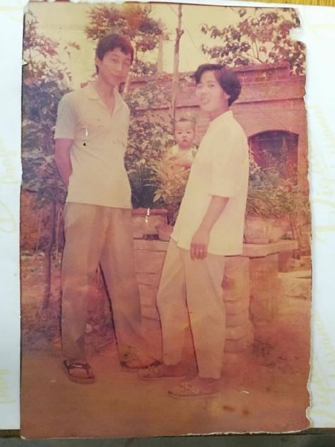 儿时的柳峰与父母。