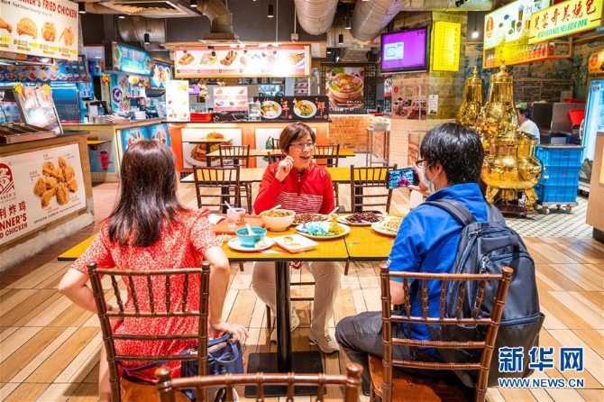 6月17日,在马来西亚吉隆坡,伍安琪做网络直播介绍吉隆坡美食。 新华社记者朱炜摄