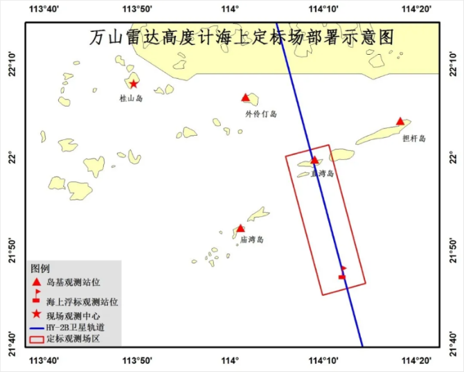 据悉,万山雷达高度计海上定标场是继美国Harvest石油平台定标场、法国Corsica定标场、希腊Gavdos定标场和澳大利亚Bass海峡定标场之后,全球第五个、我国首个业务化运行的卫星雷达高度计定标场,主要为我国自主海洋观测卫星雷达高度计的在轨绝对定标业务服务。该观测系统由一个现场观测中心(桂山岛)、四个岛基观测点(担杆岛、外伶仃岛、直湾岛和庙湾岛)以及一个海上锚系浮标观测点(直湾岛以南约30km处)组成。