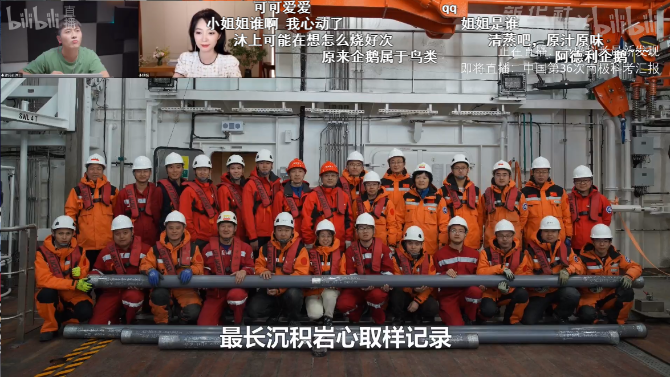 “这得益于雪龙2号装备了先进的长岩芯取样器。”中国第36次南极科考队员、自然资源部第一海洋研究所的唐正表示,在南极周边的海底沉积物采样,相当于在南极这个全球气候变化的“穴位”上做“针灸”,此次破纪录的成功采样,能帮助人们了解约200万年的南极变化历史,为理解全球气候变化规律提供重要参考。 直播中,新华社记者张扬、B站UP主盗月社沐上以主播身份与资深南极记者刘诗平连线,畅聊南极故事。在“南极万象云讲堂”环节,中国第36次南极科考队大洋考察队队长罗光富、北京师范大学生命科学学院教授邓文洪等多位南极专家还对南极的鸟类、海洋生物、建筑、医学等知识等作了生动科普。两个多小时的直播,峰值人气达到140多万,在欢乐的弹幕中圆满结束。
