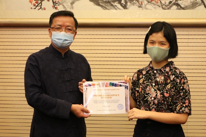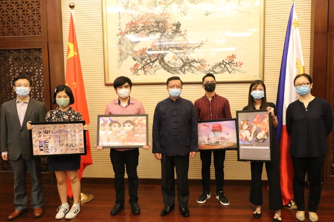 当地时间6月22日,“庆祝中菲建交45周年图画大赛”颁奖仪式在中国驻菲律宾大使馆举行。黄溪连大使向前来出席仪式的获奖者们颁奖,也通过视频连线的方式,向因疫情影响而无法到达现场的获奖者表达了祝贺。