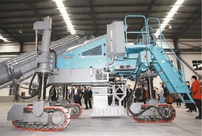 5月14日,在湖南省“5G+工业互联网”现场推进会上,企业负责人观摩山河智能装备集团的远程遥控仓。(新华社发)
