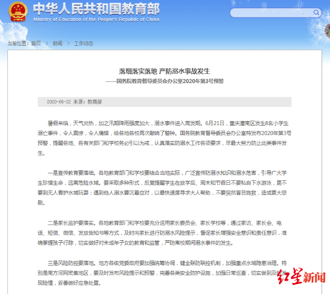 6月22日,教育部官网发布《国务院教育督导委员会办公室2020年第3号预警》: