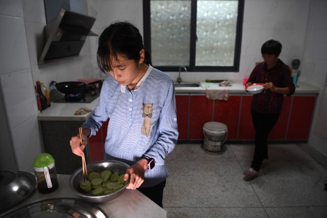 2019年9月,蔡齐艳升入金寨县三合实验学校读六年级,平时寄宿在学校,周末步行10里山路回家。