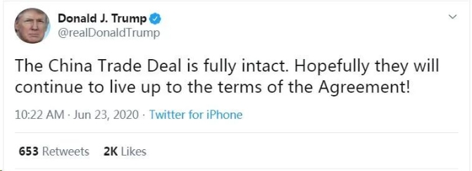 中美贸易协议完全是毫发无损。希望他们能继续履行协议中的条款!