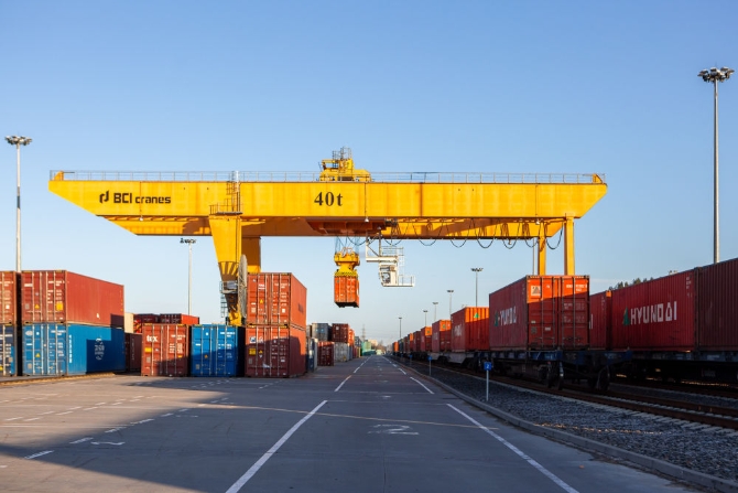 4月14日,在立陶宛首都维尔纽斯,中欧班列(渝新欧)“中国邮政号”在卸货。(新华社发)(立陶宛邮政供图)