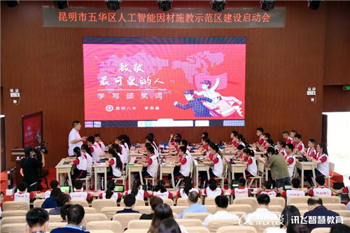 6月24日,由科大讯飞股份有限公司和昆明市五华区携手打造的全省首个人工智能因材施教示范区在昆明市第八中学正式启动。
