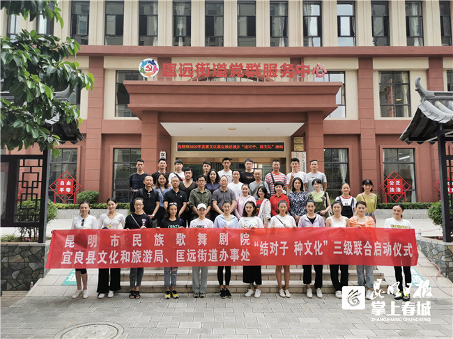 开幕式结束后,市民族歌舞剧院还与宜良县文化和旅游局、匡远街道办事处进行了“结对子 种文化”活动。在匡远街道办事处文化站室,剧院艺术家们与当地的文艺爱好者进行了交流指导。