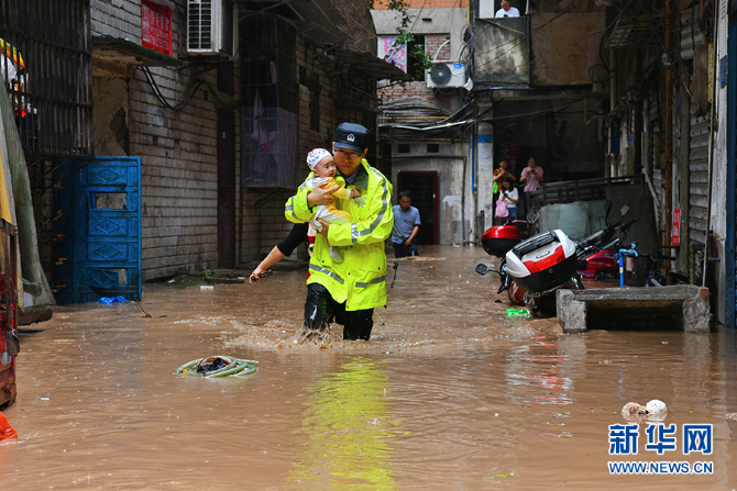 脚步要不缓不急,手臂要不松不紧,在齐膝深的洪水中穿行,救援的民警用宽阔的臂膀为小宝贝撑起了一把结实的“保护伞”。天灾无情,人间有爱,在綦江,一幕幕暖心的画面让人难忘。新华网 发(陈星宇 摄)