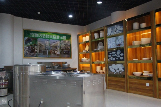 这是青海拉面产业电商服务中心展示的拉面厨具和餐具(6月19日摄)。新华社记者 周喆 摄