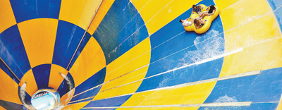6月25日,游客在山东烟台37度梦幻海水乐园体验“深海龙卷风”游乐项目。