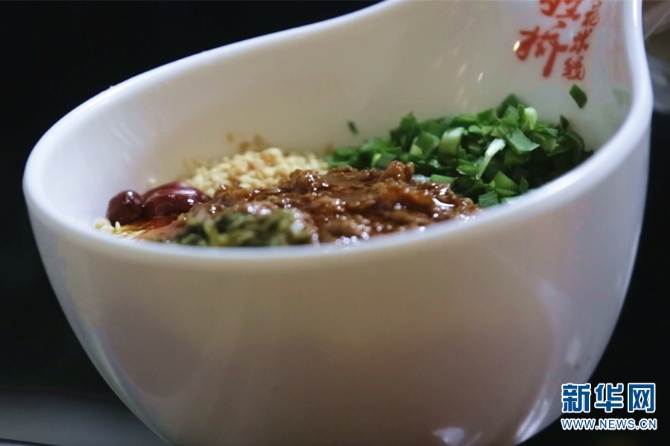 多种佐料的搭配让豆花米线看起来颜色丰富(6月21日摄)。新华网 徐华陵 摄
