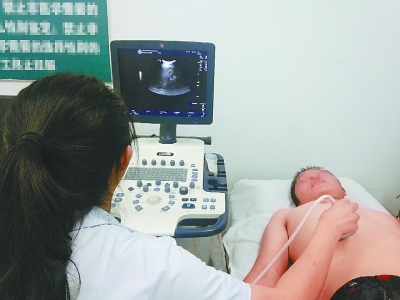 近日,易县狼牙山镇卫生院工作人员正在应用北京市海淀区帮扶并安装的DR网络系统给村民做检查,并将数据上传到县医院会同北京三甲医院进行诊断和治疗。高强摄