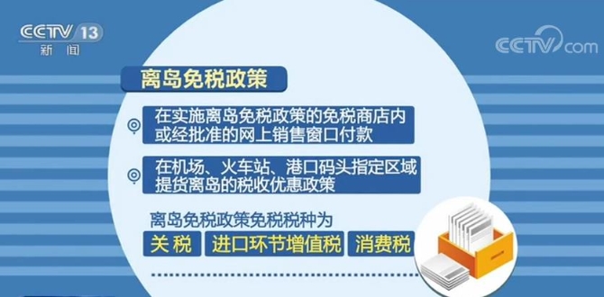 具体来看,所谓离岛免税政策,是指对乘飞机、火车、轮船离岛(不包括离境)旅客实行限值、限量、限品种免进口税购物,在实施离岛免税政策的免税商店内或经批准的网上销售窗口付款,在机场、火车站、港口码头指定区域提货离岛的税收优惠政策。离岛免税政策免税税种为关税、进口环节增值税和消费税。