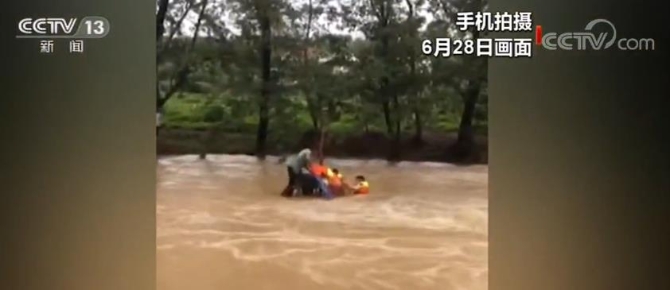 央视网消息:这两天,受到暴雨影响,在湖北京山市三阳镇,暴雨导致山洪暴发,居民被困。三阳派出所民警紧急展开救援。