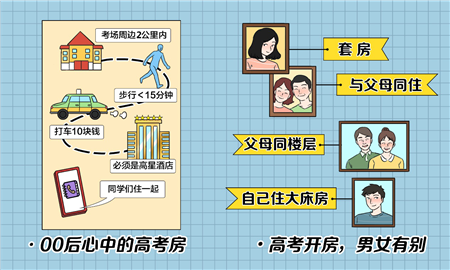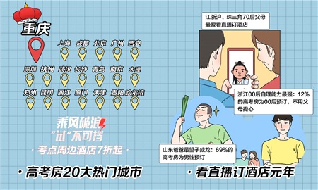 为让孩子多一点复习和休息时间,很多家长都提前选择在考场附近预订酒店。据酒店业内人士分析,今年高考时间延期至7月份,加上疫情防控的影响,考生和家长都倾向于在考场周边住宿,以减少往返通勤所带来的各种风险,一定程度上推高了部分城市“高考房”的要求。