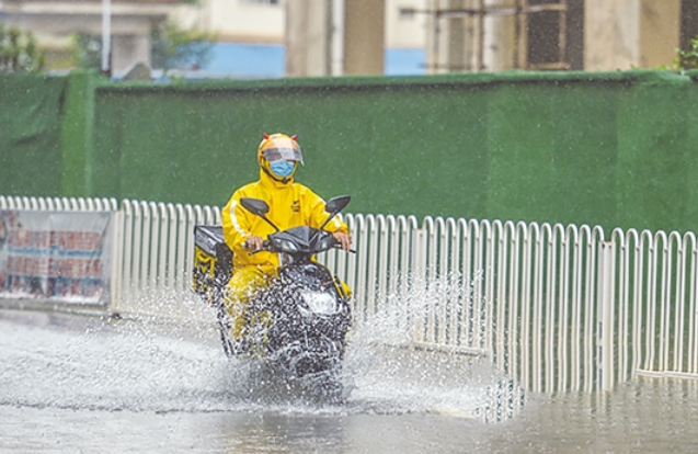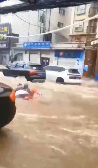 “今天从早上10点30分开始,到现在送了52单了!在这个时间段送到50多单还算不错。”昨晚8点,美团外卖骑手刘孝勇笑着说。因为路面有积水,常常要蹚水而过,有的地方甚至没过膝盖,就不能骑电动车了。最远的一次,他徒步到一公里外去取餐。