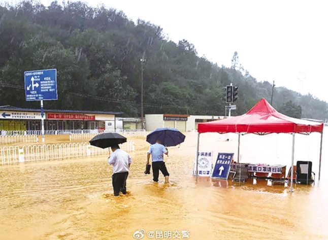 考场一片汪洋 昆明交警供图
