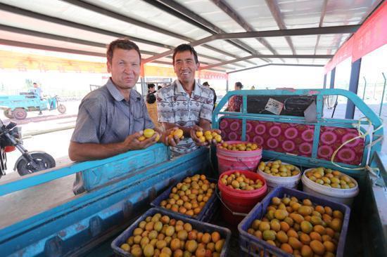 来自广东的客商王金波说:“这个木亚格杏个大、肉厚、味甜,在我们那里很受欢迎。今年我们计划在疏附县收购200多吨,我们公司要把最优质的销往广东,让我们和杏农双赢。”