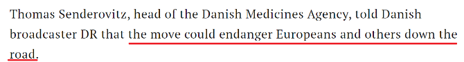 丹麦药品管理局局长托马斯·森德罗维茨则表示,美国囤货行为可能危及欧洲和其他国家的未来,“我从没见过这样的事,一家公司只向一个国家出售股票,这很奇怪,也很不合适。”