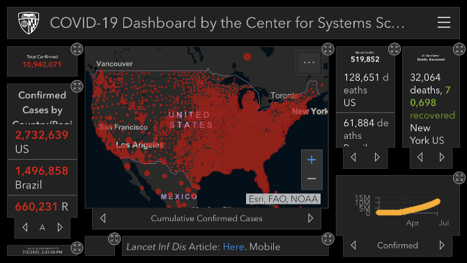 据美国约翰斯·霍普金斯大学统计数据显示,截至北京时间3日7时33分,美国新冠肺炎确诊病例累计超过273万例;当地时间7月2日晚,全美报告单日新增确诊病例数超过5.4万例,再次刷新单日新增病例数最高纪录,且连续两日超5万例。