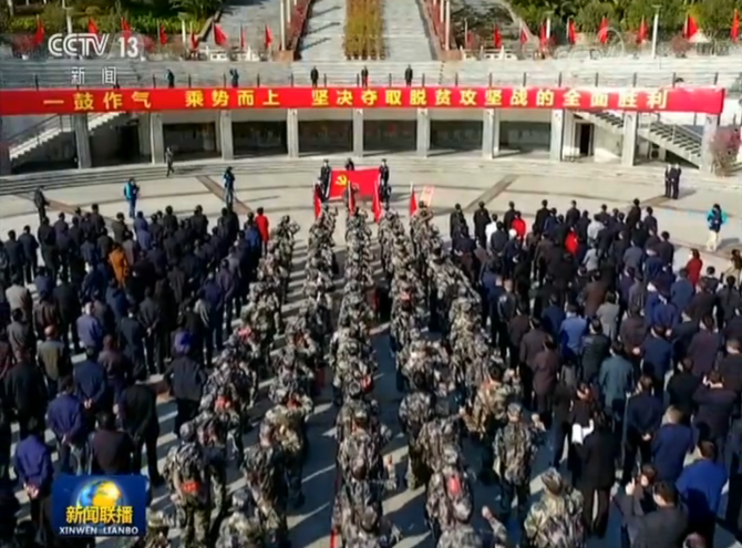 出发前,背包队员们曾面对党旗宣誓,“不少一户、不少一人”“不获全胜,决不收兵”。